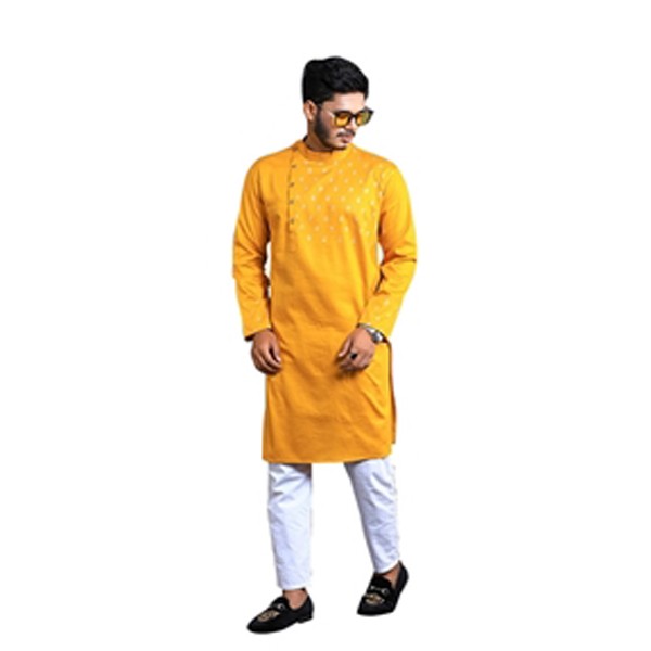 Men's Fashionable Printed PanjabiProduct Type: PanjabiFabric: CottonGender: MenSleeve: Full SleeveStyling & Slim FitAvailable Size: 38, 40, 42, 44.Color: Golden (As given picture).