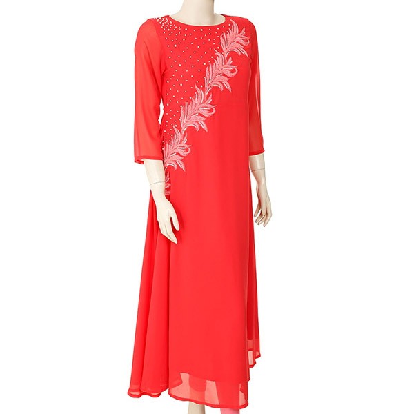 Women's Stylish Mid Long Ethnic Georgette Kurtis Deep Scarlet Color and very comfortable to use